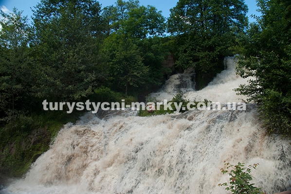 16-метровий водоспад на р. Джурин, відомий також як Червоногородський, з мурованим мостом і рештками млина. Його вважають найвищим рівнинним водоспадом України.